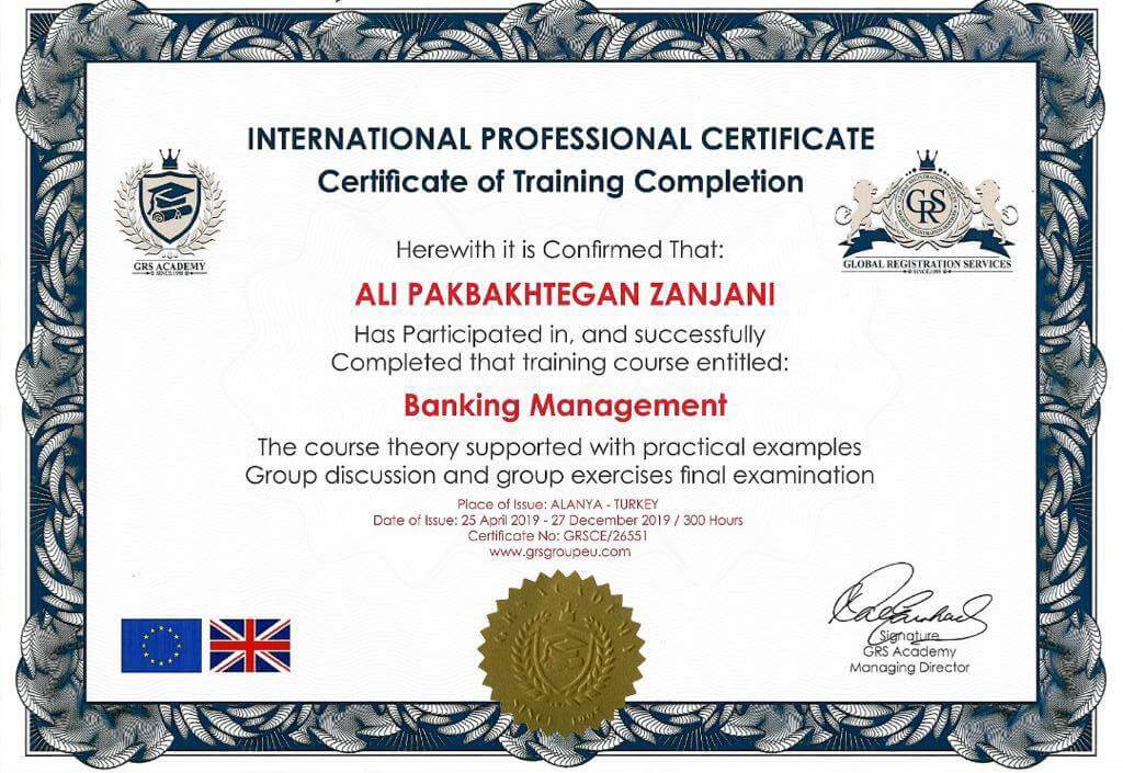 Completed a professional training course in Banking Management at GRS Academy, London (2019), focusing on financial systems, global banking operations, and strategic management.